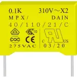 ♦特點 Feature類別X1等級,對主動或被動的易燃性的可靠性高,自愈性強,電壓強度高,衰減良好,阻抗低,抑制干擾性強,塑殼符合UL94V-0防火等級Class XI,Particularly high reliability against active and passive flammability. Excellent self-healing as well as high voltage strength. High degree of interference suppression due to good attenuation and low. ESR Plastic case (UL94V-0).♦主要應用 Typical Applications適用於高頻,直流,交流,偶合,跨接脈衝電路中,適用於即使電容器失效也不會導致電擊危險的情況Widely used in high frequency, DC, AC and pulse circuits. Suitable for use in situations where failure of capacitor would not lead to danger of electric shock. | EMI抑制干擾電容器 / EMI Suppression Interference Capacitor | ||